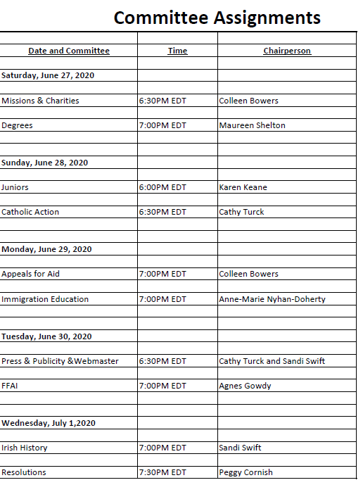 2020 Virtual Convention Committee Meetings The following is the dates and time for the Convention Committee Meetings: